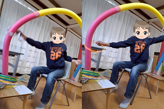 リングを前から後ろへ送るゲームです🤗何秒でできるかな??