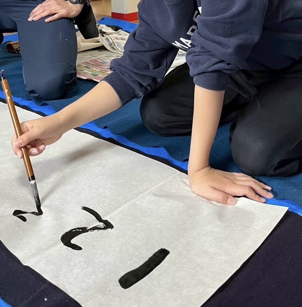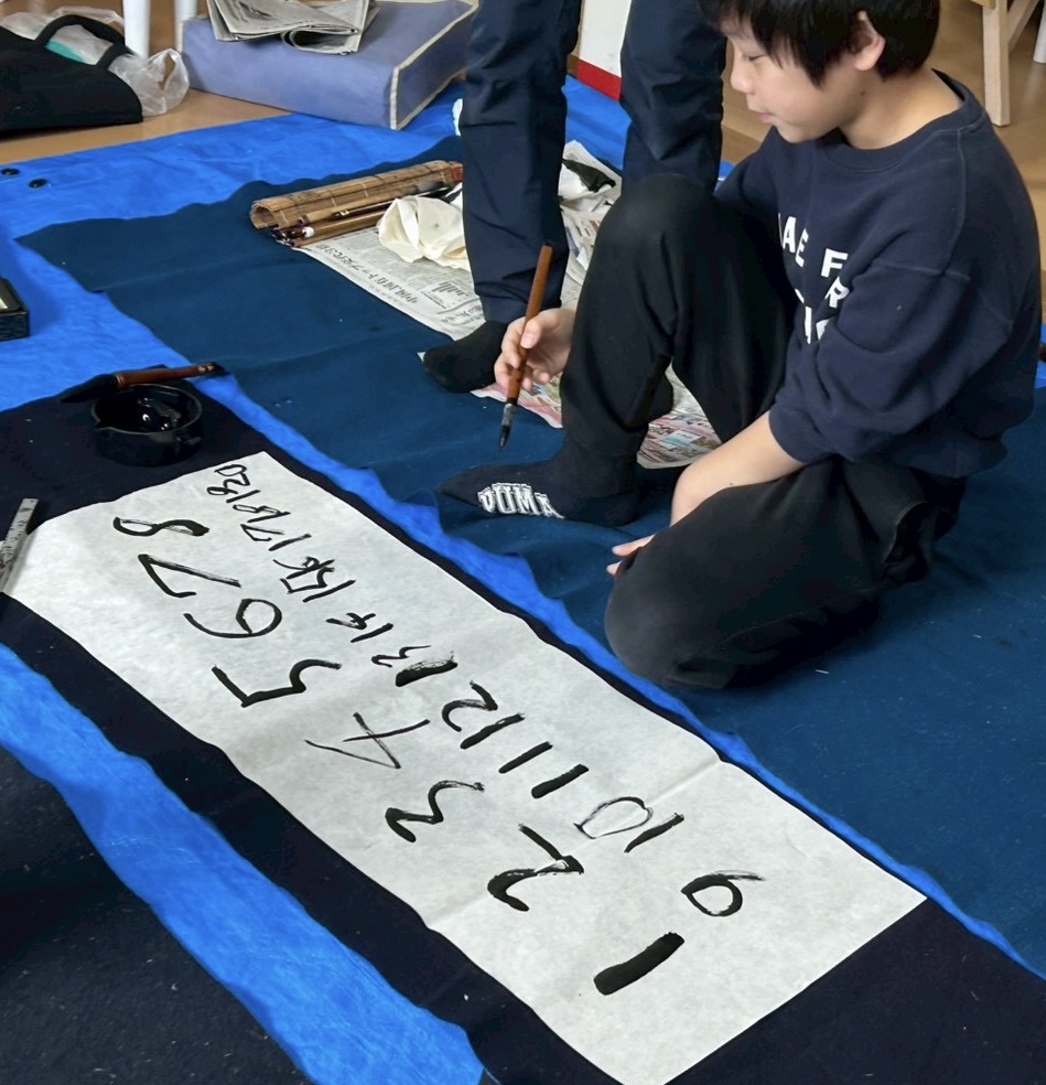 今まで書いたことのないような大きな紙に、大きな筆で書くスタッフの姿を見て、